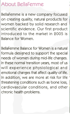 Home l About BellaFemme l Products l Results l Order Now l Contact Us l Scientific Research